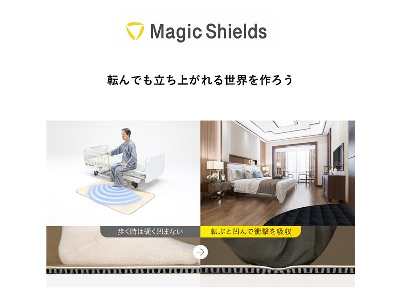 Magic Shieldsは「転んでも立ち上がれる世界を作ろう」をミッションに掲げ、高齢者の転倒骨折の課題を解決するとともに、医療・介護費増大のような社会課題の解決にもつながる緩衝フロア・マット『ころやわ®』を開発・販売する製造業スタートアップ。